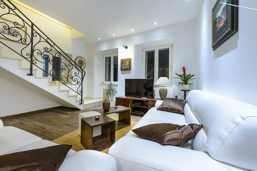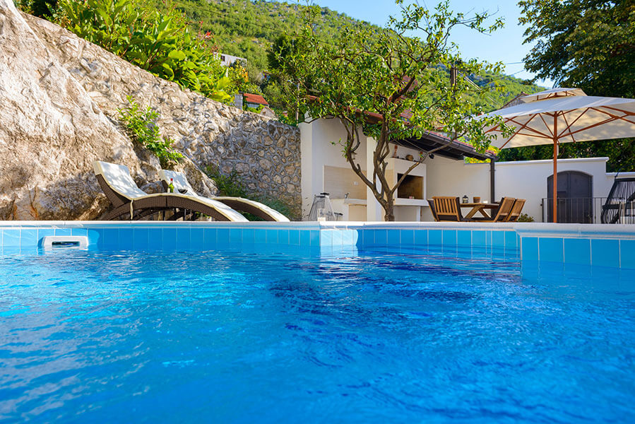 Sunset Rose terrace is set a few minutes from Dubrovnik Old City by bus, on the way to the ACI Marina. Perfect for family holidays! May accommodate 4+1 persons. Villa is enclosed by walls and is hidden from the street outside and has an outside entrance. Villa is set on two floors (in total 95 square m + 100 square m of terrace, lounge and swimming pool).